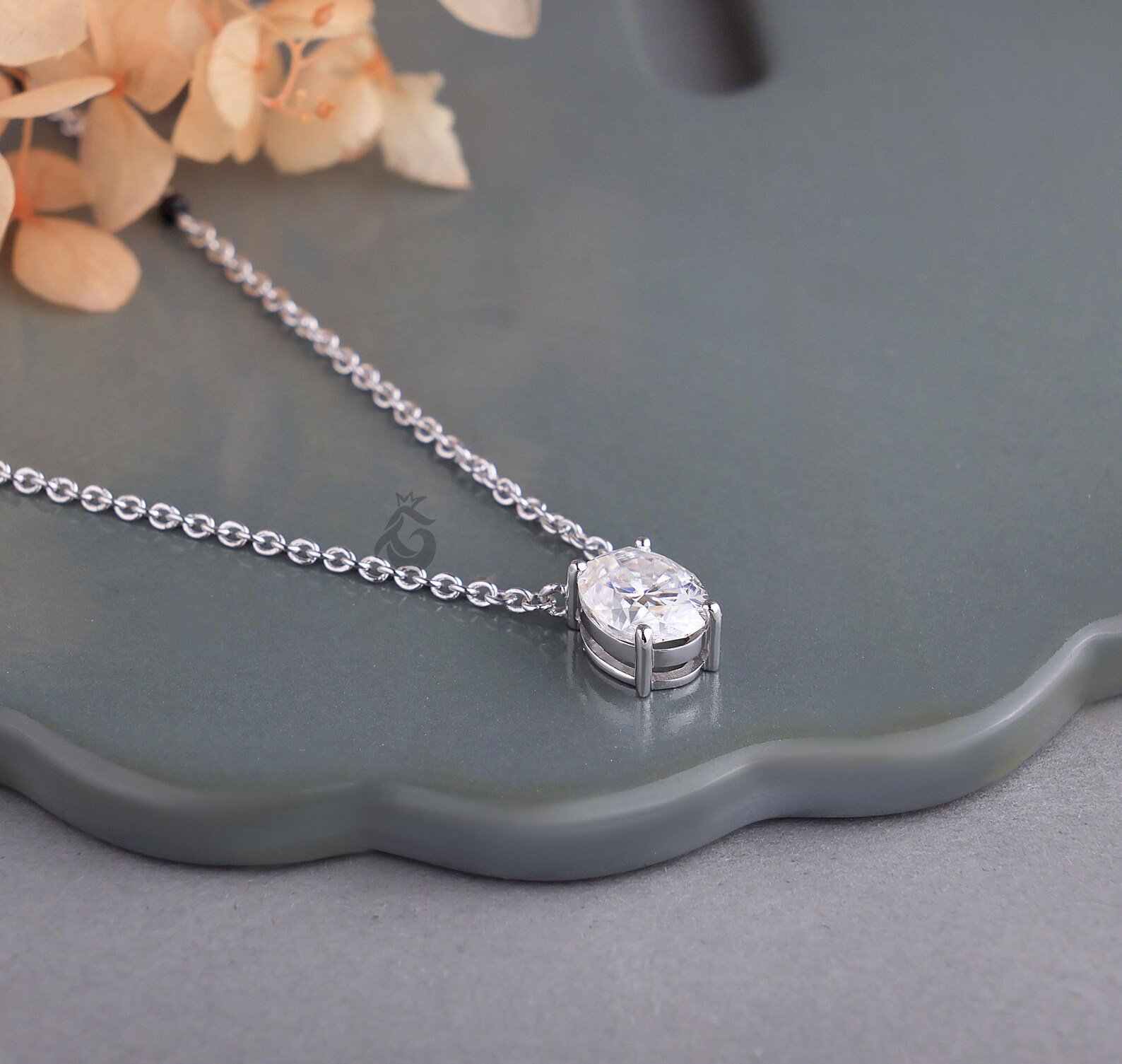 A delicate silver-tone chain featuring a brilliant oval-cut solitaire crystal at the center, offering a refined sparkle with timeless appeal. A clean and versatile unisex chain perfect for everyday wear or layering.