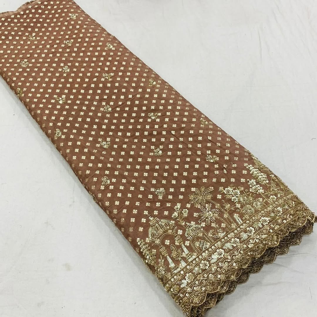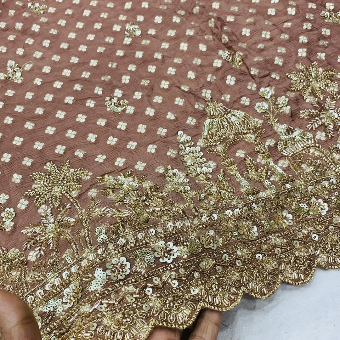 Pure Chinon Silk 2 Side Cutdana, Beads, Sequin Hand Work Borders Fabric For Dupatta