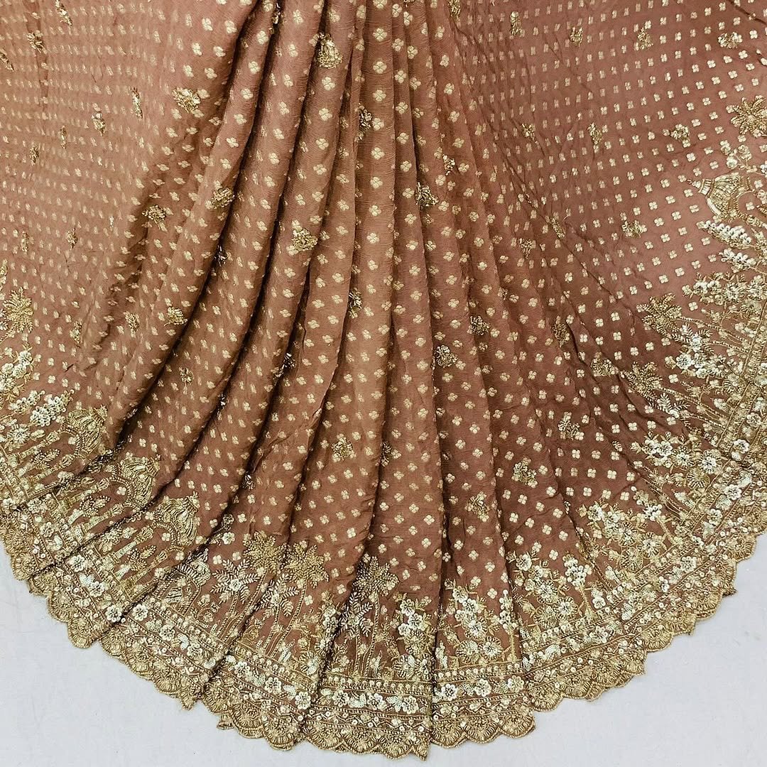 Pure Chinon Silk Zari Jaquard Heavy Daman With Cutdana, Beads, Sequin Hand Work With Zari Embroidery
