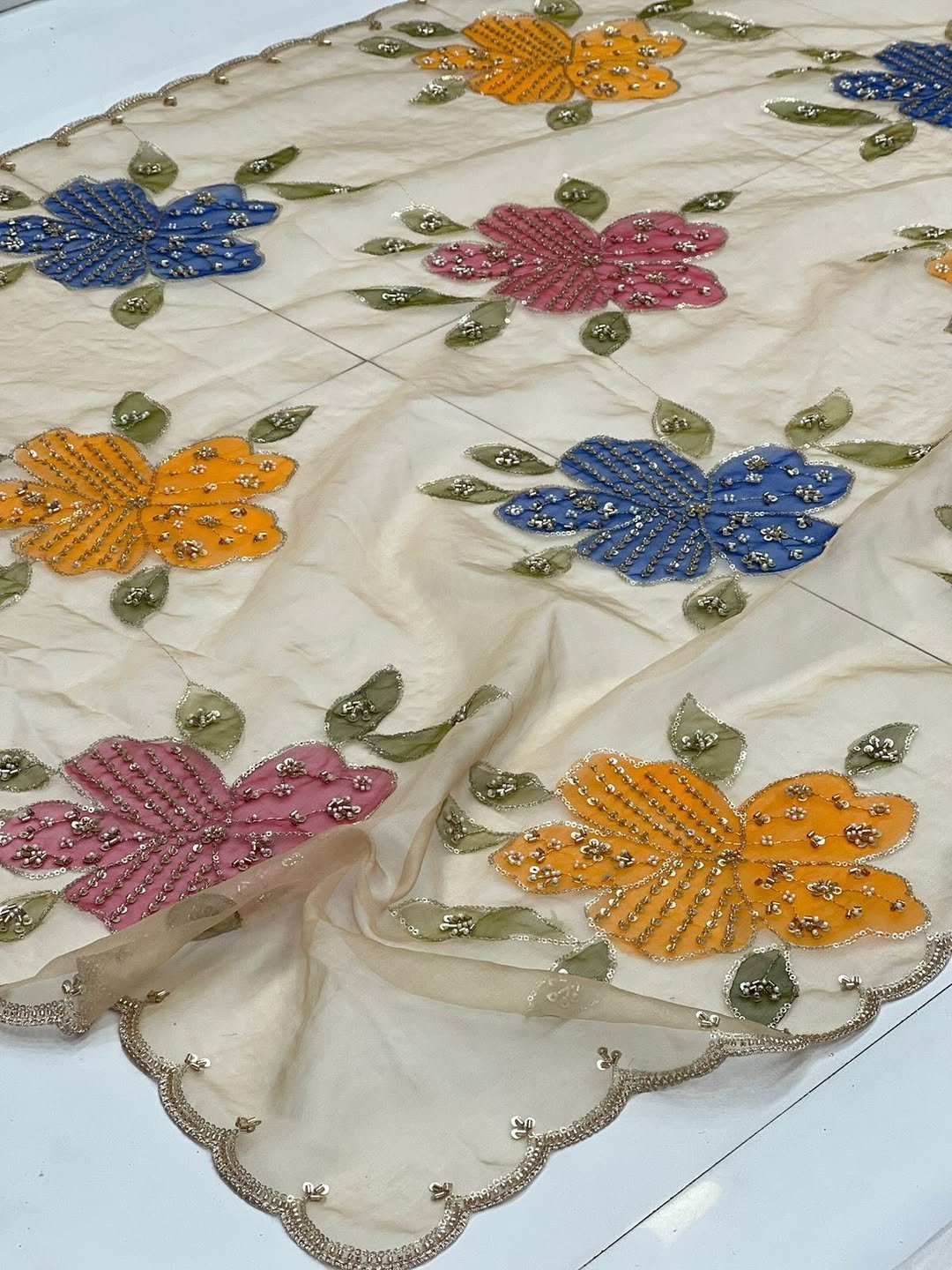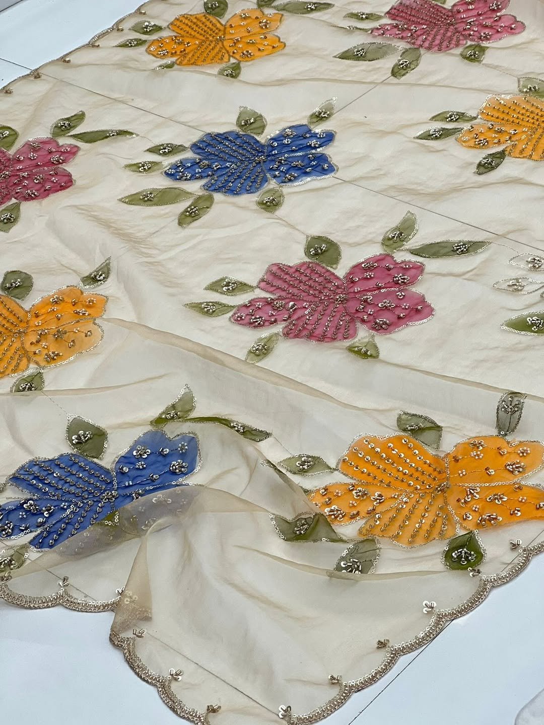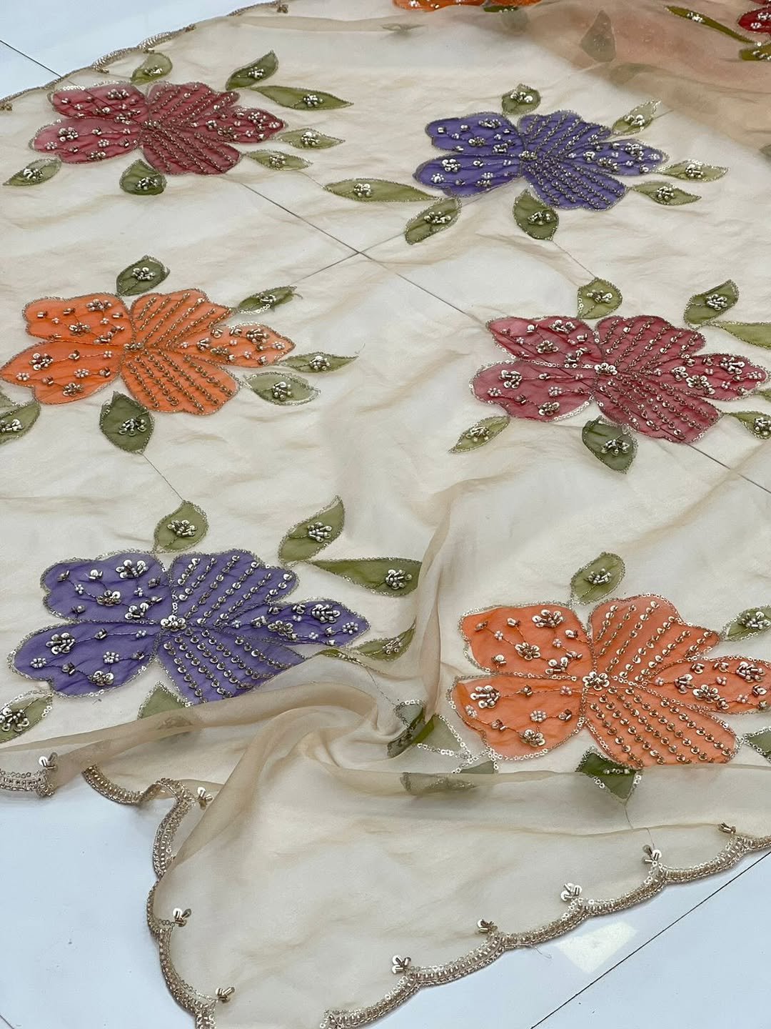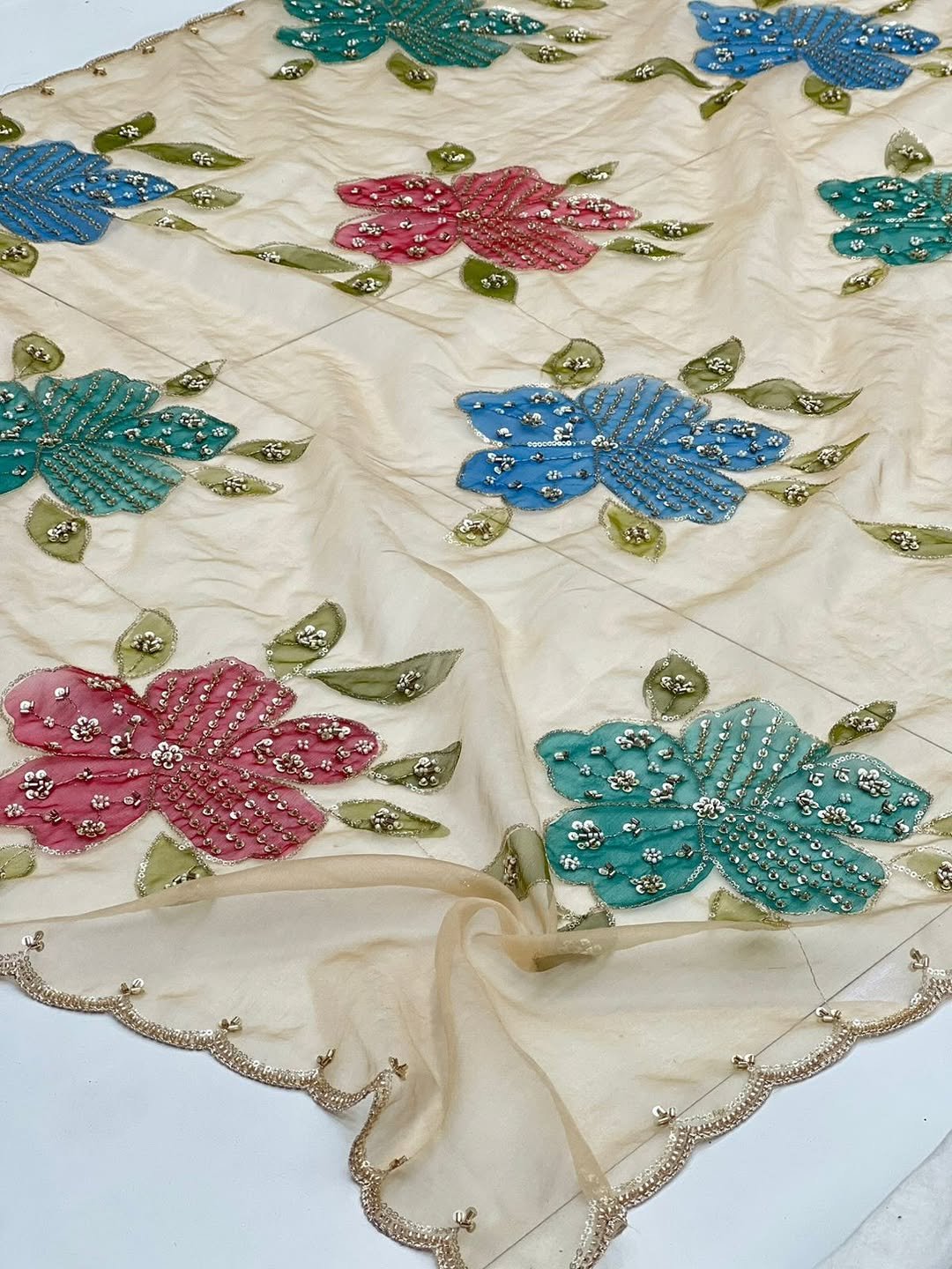 Pure Organza Prints With Cutdana, Beads, Sequin Hand Work Dupatta
