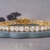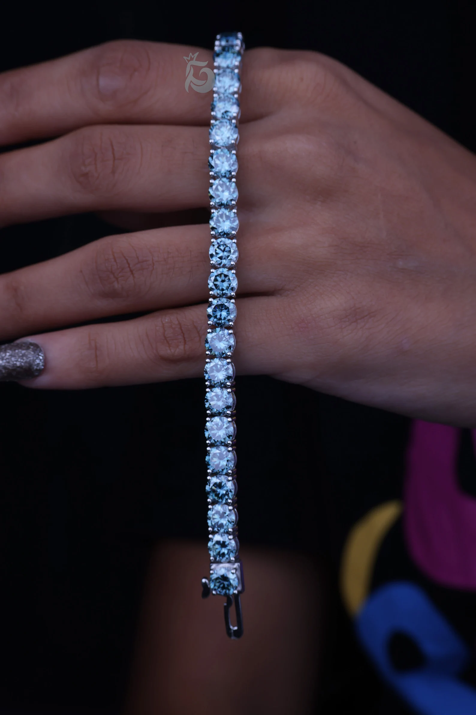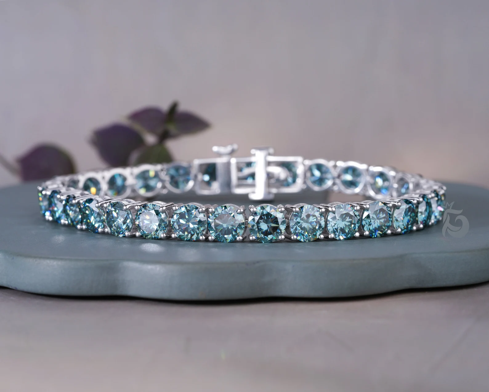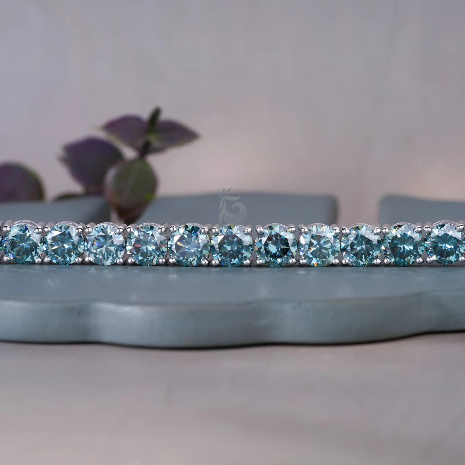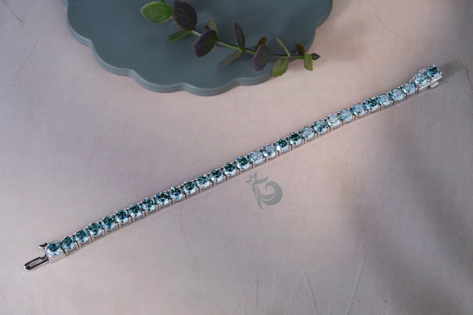 Beautiful tennis bracelet with round aqua blue crystals set in a shiny silver-tone finish. A classic and stylish piece perfect for everyday wear or special occasions.