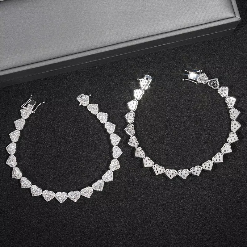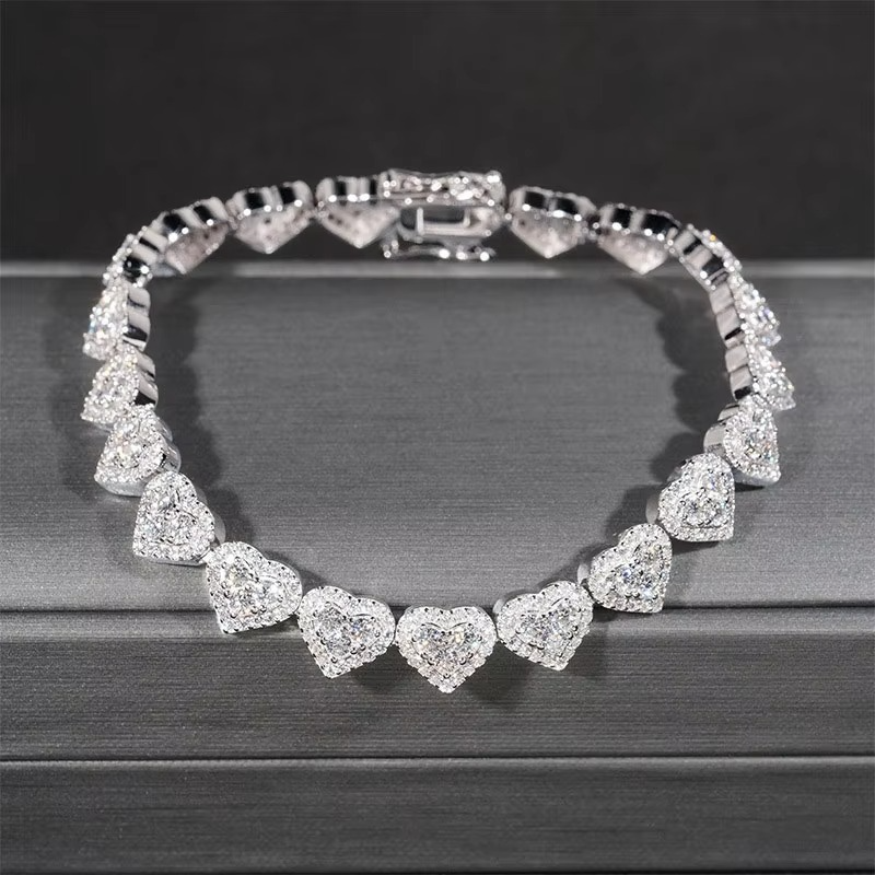 Romantic tennis bracelet featuring heart-shaped clear crystals set in a polished silver-tone finish. A beautiful fashion jewelry piece perfect for everyday wear or special occasions.