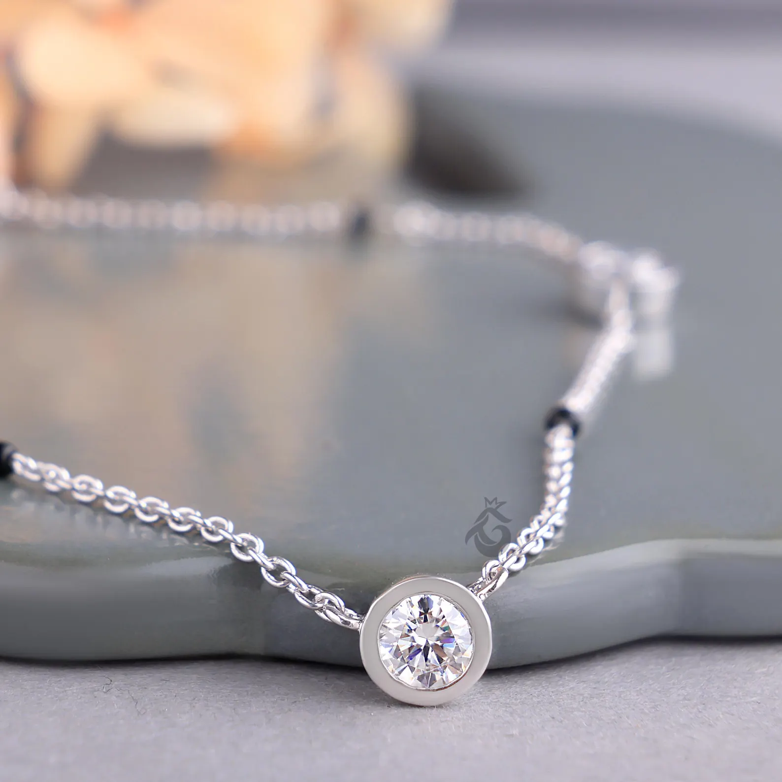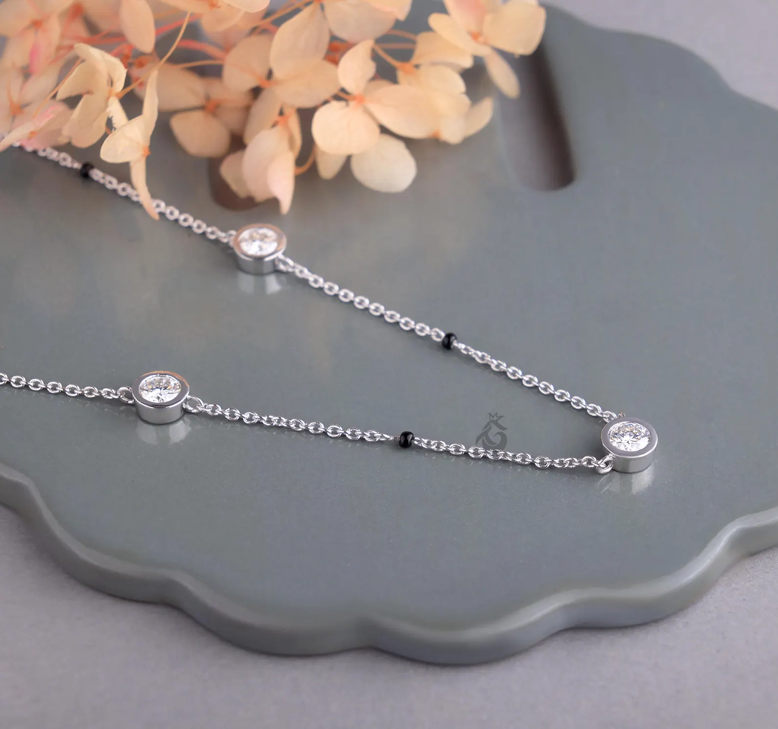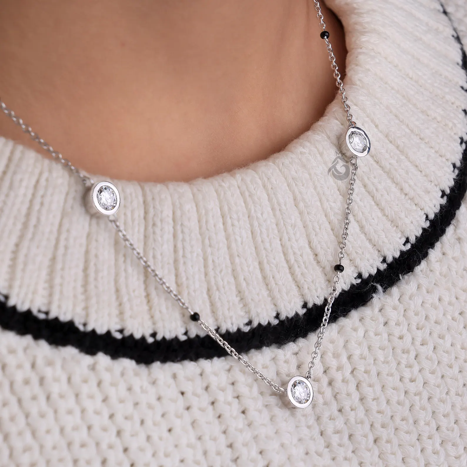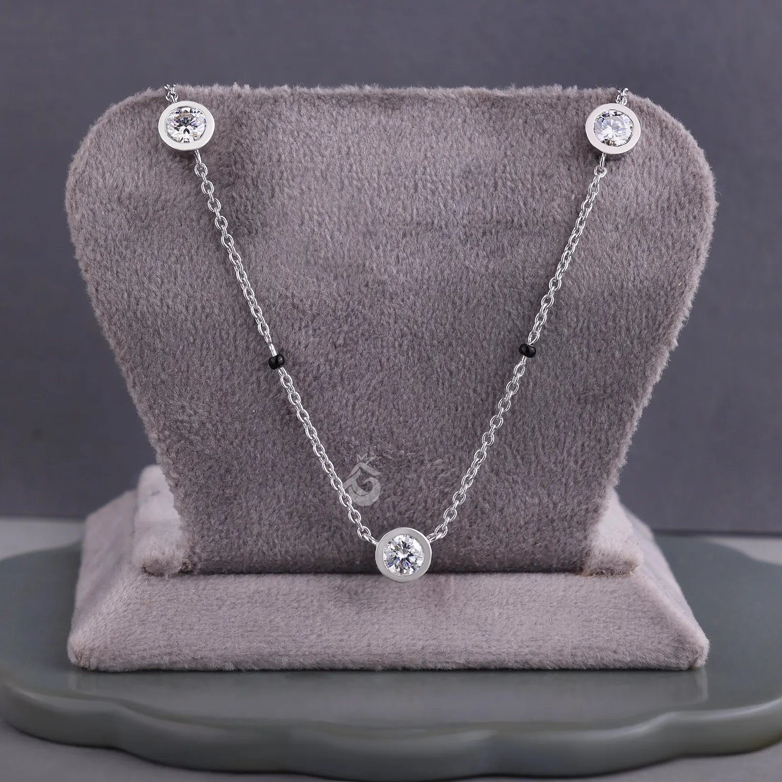 A refined chain featuring three bezel-set round crystals spaced along a delicate silver-tone chain, creating a balanced sparkle with modern minimal appeal. A versatile unisex piece perfect for everyday wear or subtle layering.