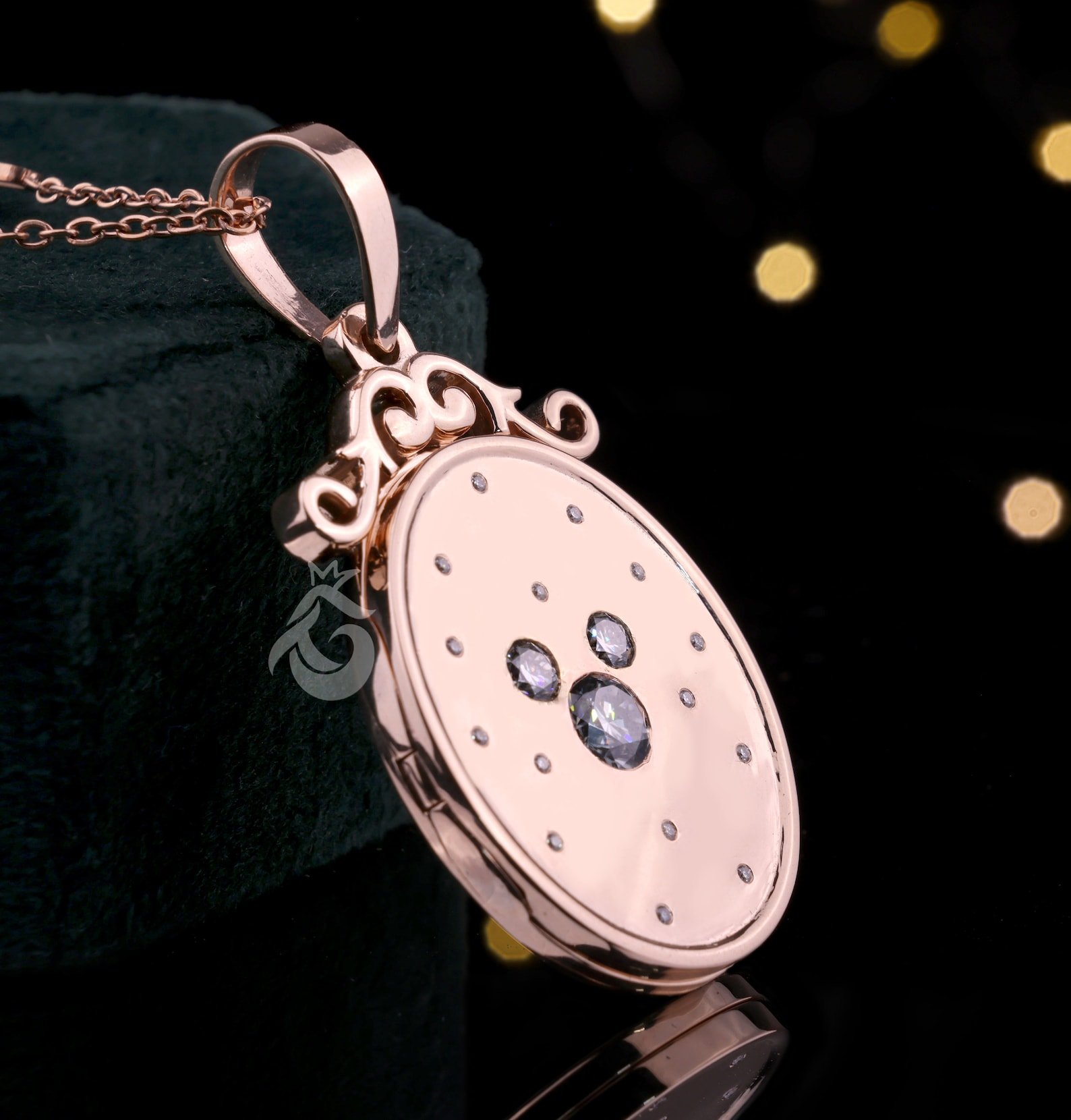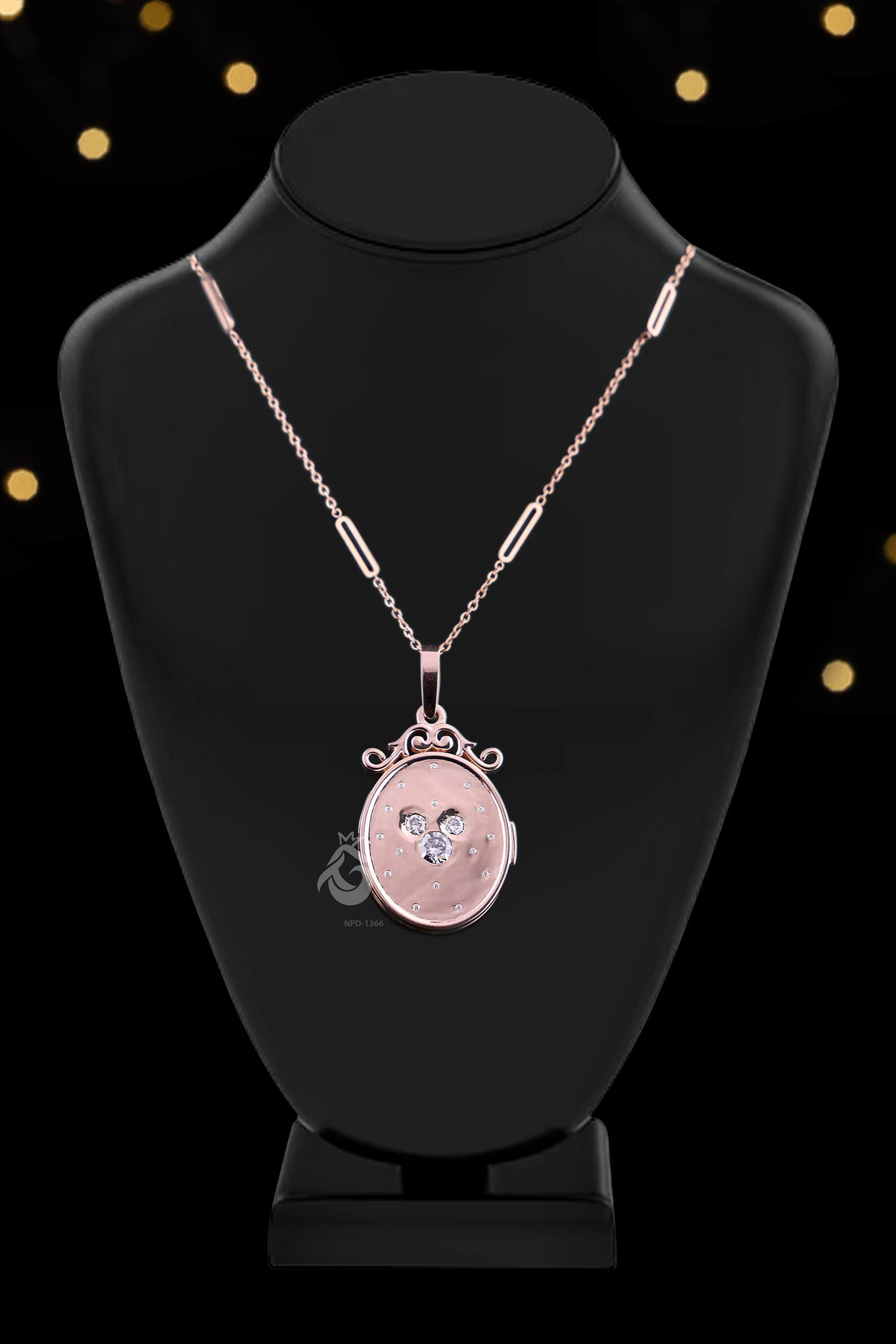 Vintage Oval Crystal Locket Pendant Chain