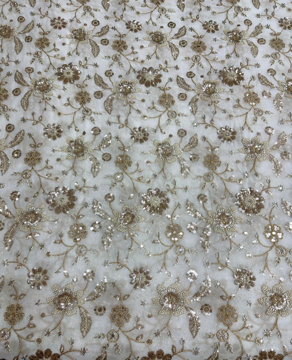 Viscose Georgette Heavy All Over Cutdana, Beads, Sequin Hand Work With Zari Jaal Design Embroidery